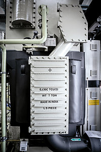 - Zweistufige Absorptionskältemaschine 1,115 MW, Gewicht 17 Tonnen (Kühlmittel Lithiumbromid)