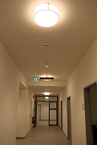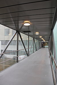 Zudem wurden rund 175.000 m Starkstromkabel inkl. Tragsystemen und 150.000 m Schwachstromkabel verlegt. Die Beleuchtungsanlage umfasst rund 2500 Leuchten. Die Lichtsteuerung erfolgt zum Teil mit DALI. So wurde in einzelnen Räumen die Beleuchtungssimulation durch unsere Abteilung Gebäudeautomation an den natürlichen Tagesrhythmus mit Sonnenaufgang und -untergang angepasst.