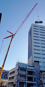 Schon die Lage der Baustelle für das Pressehaus Berlin mitten am Alexanderplatz zählte zu den organisatorischen Herausforderungen, die es für die Projekt- und Bauleitung der En.plus zu bewältigen galt. Und das nicht nur während der spektakulären Beförderung der beiden je elf Tonnen schweren Kältemaschinen auf das Dach des 80 Meter hohen Gebäudes durch einen 500-Tonnen-Kran. Auch die tägliche Materialanlieferung für alle Gewerke war alles andere als einfach zu bewerkstelligen.  Erschwerend kam ein enormer zeitlicher Druck hinzu. Obwohl sich die Fertigstellung des Rohbaus aus diversen Gründen um mehr als drei Monate verzögert hatte, stand das Datum der Fertigstellung nicht zur Diskussion. Die Verträge des Bauherrn mit den neuen Hauptmietern waren gemacht, die entsprechenden Kündigungen ausgesprochen. Und so musste man auf der Baustelle organisatorisch auf weiten Strecken umplanen. Von den insgesamt sechs Aufzügen des Gebäudes standen zeitweise nur zwei zur Verfügung. Das Treppenhaus war bereits abgerissen. Im weiteren Verlauf galt es dann zusätzlich auf die in den Etagen zwei bis neun bereits eingezogenen Mieter Rücksicht zu nehmen.  Umso beeindruckender ist es, die installierte Haustechnik nun an Ort und Stelle in Funktion zu sehen. Die beiden gewaltigen Kältemaschinen à 970 kW, die auf dem Dach des Hochhauses mit Blick zum Fernsehturm installiert wurden, sind mit einer nachgeschalteten Kältezentrale verbunden, die auf sehr engem Raum im Treppenhausturm der obersten Etage untergebracht ist. Eine der beiden Kältemaschinen liefert den Kältebedarf für die Gebäudekonvektoren, die andere versorgt die RLT-Anlagen. Auf Wunsch eines Mieters wurden für die Kühlung von Servern zusätzlich vier weitere Kältemaschinen à 86 kW auf dem Dach positioniert. Im Untergeschoss wiederum erstrahlt die Heizungsanlage, eine Heißwasser-Fernwärmelösung, in vollem Glanz. Gespeist wird die 1.600 kW starke Anlage über eine Fernwärmestation mit einem Plattenwärmetauscher. Ein angeschlossener Heizungsverteiler erreicht die einzelnen Nutzungsbereiche über zehn Abgänge. Die Versorgung der Büroebenen mit erwärmter oder gekühlter Luft gewährleisten 988 Gebläsekonvektoren, die an den Außenwänden verbaut wurden, sowie 69 RLT-Anlagen. Für ein angenehmes Raumklima wurden pro Bürofläche vier Lüftungsanlagen montiert. Weitere fünf Lüftungsanlagen im Untergeschoss versorgen die Gewerbebereiche im Erdgeschoss und in der ersten Etage. Die Warmluft für sämtliche Nassbereiche und Treppenhäuser wird über Röhrenkonvektoren verteilt.