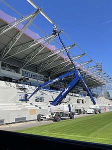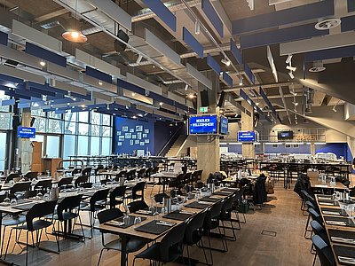 EAB führte viele notwendige Dienstleistungen wie die Installation der Brandmeldeanlage, der Sicherheitsbeleuchtung, der Niederspannungsanlagen und der Gebäudeverkabelung AV / SV durch Im VIP-Bereich gibt es einen Platz, an dem sich EAB als Unternehmen mit seinen Leistungen im Stadion präsentiert. So können die Zuschauer in dem Bereich, wo sie sich befinden, im VIP-Bereich, sehen wie dieser Entstanden ist. Zusätzlich hat EAB bei ausgewählten Spielen Bandenwerbung, welche auch in der Sportschau, usw. zu sehen war und haben so eine sehr große Reichweite erzielt. Die Zielgruppe sind hier sowohl potenzielle Kunden, die auf EAB aufmerksam werden, weil VIP-Bereich eine sehr gute Plattform zum Netzwerken ist. Außerdem gewinnt der Name EAB / Elevion Group an Bekanntheitsgrad, da die Ausstrahlung auch im TV zu sehen war. Schließlich wurde das Unternehmen mit der Bereitstellung von Unterverteilungen beauftragt, wie z. B.:
