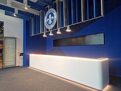 EAB ist ausführende Firma für Elektroarbeiten im Merck Stadion von Darmstadt 98 und Businesspartner mit guten Kontakten zum Verein. EAB hat für den SV Darmstadt 98 Stadion GmbH die Elektroinstallation für die Neuerrichtung der Haupttribüne, am Standort der „alten“ Haupttribüne, als Teil des Merck-Stadion am Böllenfalltor ausgeführt. Der Neubau der Haupttribüne mit Überdachung und 4- geschossigem Funktionsgebäude zuzüglich Unterkellerung mit Flächen für Sport, Presse, Aufenthaltsräumen für Zuschauer (Logen und Business Club), Sicherheitsbehörden und Stadionbetreiber für das Merckstadion am Böllenfalltor. Das Gebäude wird an Heimspieltagen des SV Darmstadts sowie zu Veranstaltungen des Betreibers genutzt. SV Darmstadt 98 trägt seine Heimspiele seit 1921 im Böllenfalltorstadion aus.