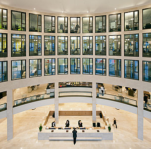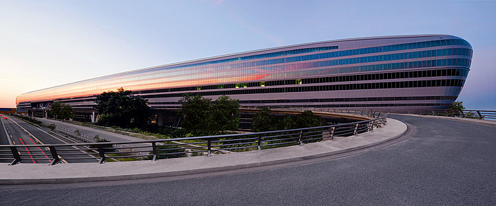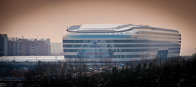 Mit einer Länge von 660 Metern und einer Breite von 65 Metern gehört The Squaire in Frankfurt zu den größten Büroimmobilien der Welt.